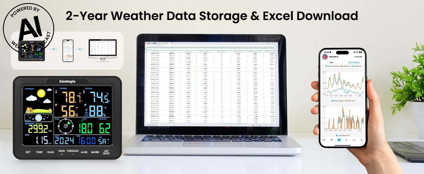 Stores comprehensive 2-year weather datasets with Excel export. Analyze historical patterns via visual charts - temperature/humidity fluctuations, storm cycles and seasonal shifts - ideal for farmers and meteorologists. -