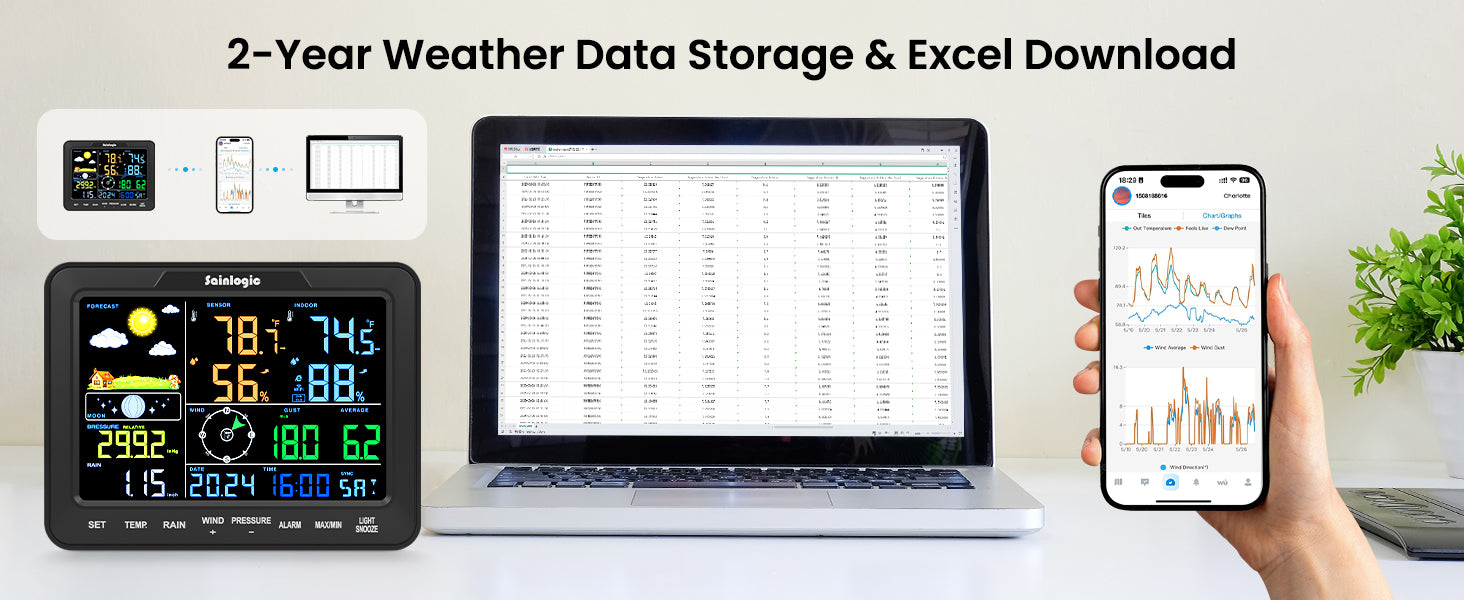 Stores comprehensive 2-year weather datasets with Excel export. Analyze historical patterns via visual charts - temperature/humidity fluctuations, storm cycles and seasonal shifts - ideal for farmers and meteorologists. -