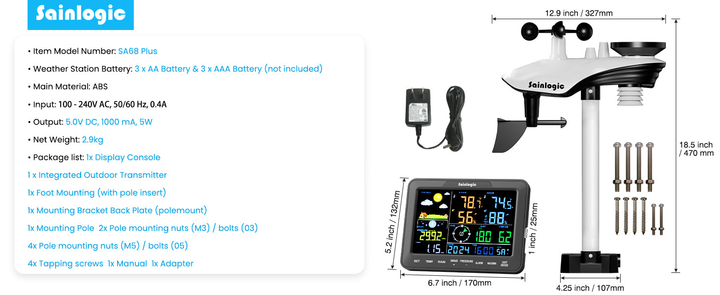 The SA68 Plus is designed to deliver reliable, high-precision weather monitoring for home users, gardeners, and professionals who need accurate real-time data. With intelligent connectivity, advanced sensors, and a fully optimized display, it provides a complete view of changing weather conditions in one powerful system.
