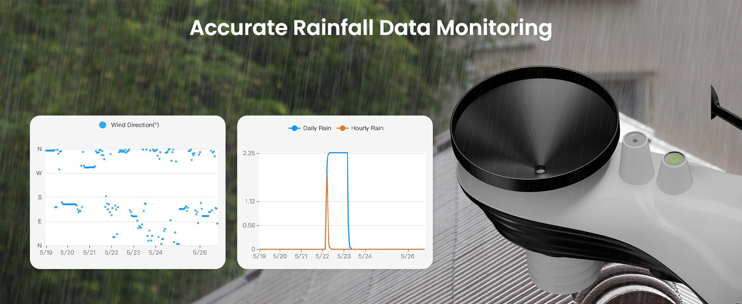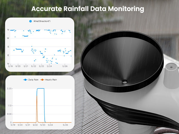 - Professional-Grade Rain Monitor: The accuracy is ±1 mm (<15 mm)/±7% (15 - 9999 mm). The Weatherseed app provides hourly, daily, weekly, monthly, and annual rainfall monitoring data accurate to the millimeter, which provides reliable hydrological data for engineers, air force meteorologists, pilots, and all users who have extremely high requirements for the reliability of rainfall data.