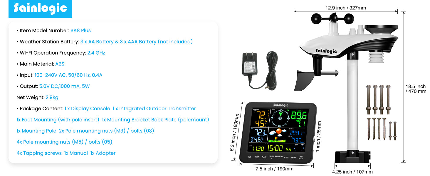 The SA8 Plus delivers accurate and reliable weather data for home users, gardeners, and weather-savvy professionals alike. With its advanced sensors, intuitive monitoring, and robust build quality, this device provides a full, easy-to-understand overview of environmental conditions so you can make informed decisions for outdoors, gardening, or home safety.