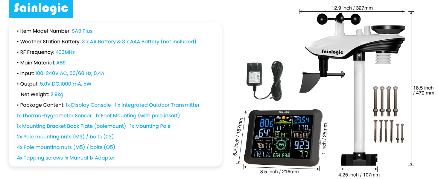 The SA9 Plus is built to provide accurate, real-time weather insights for users who need dependable data across changing outdoor conditions. With a focus on precision sensing, easy monitoring and reliable performance, it delivers the core features and technical capabilities that make everyday weather tracking simple and efficient.