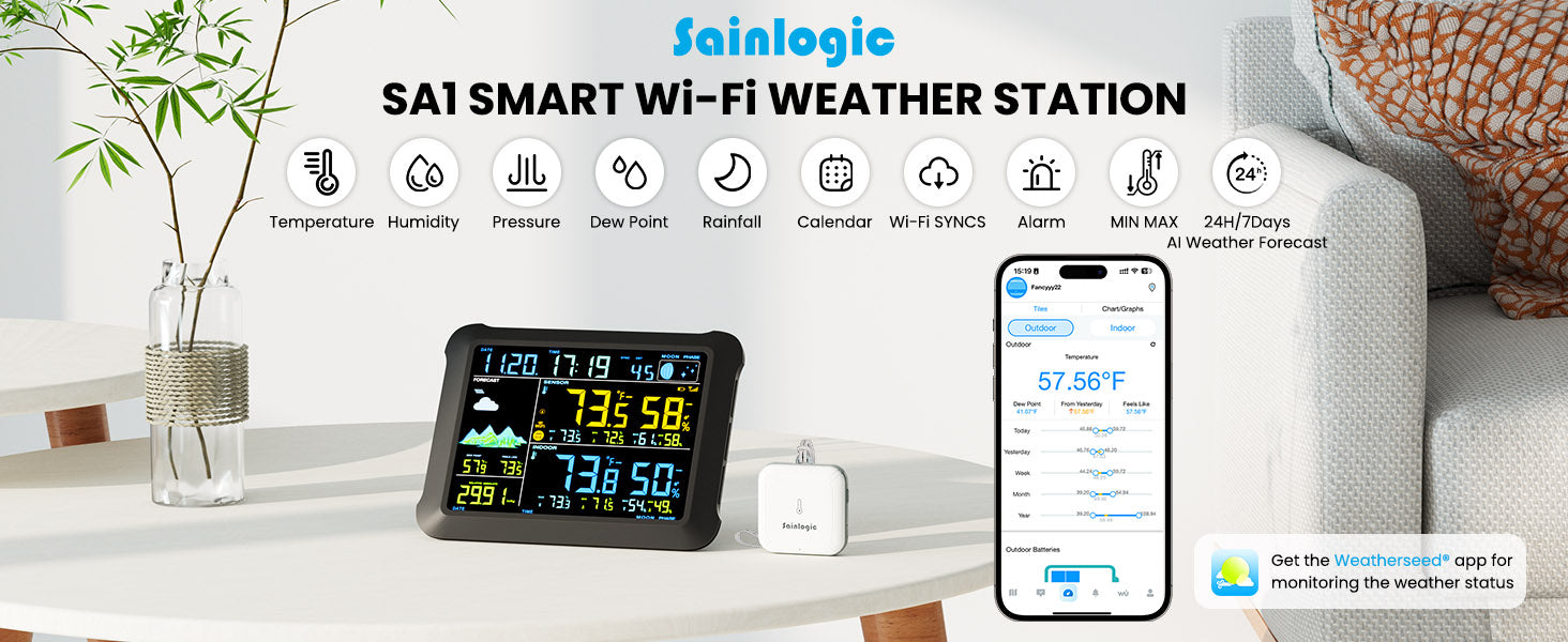 - 2-Year Data Storage: The smart weather station provides detailed data for tracking indoor and outdoor temperature humidity and pressure change. The weather station supports online viewing of 2-year data graphs & charts and export of data recorded.