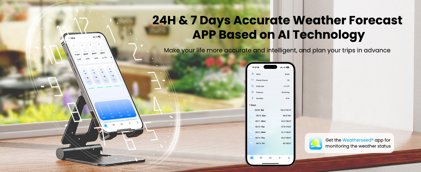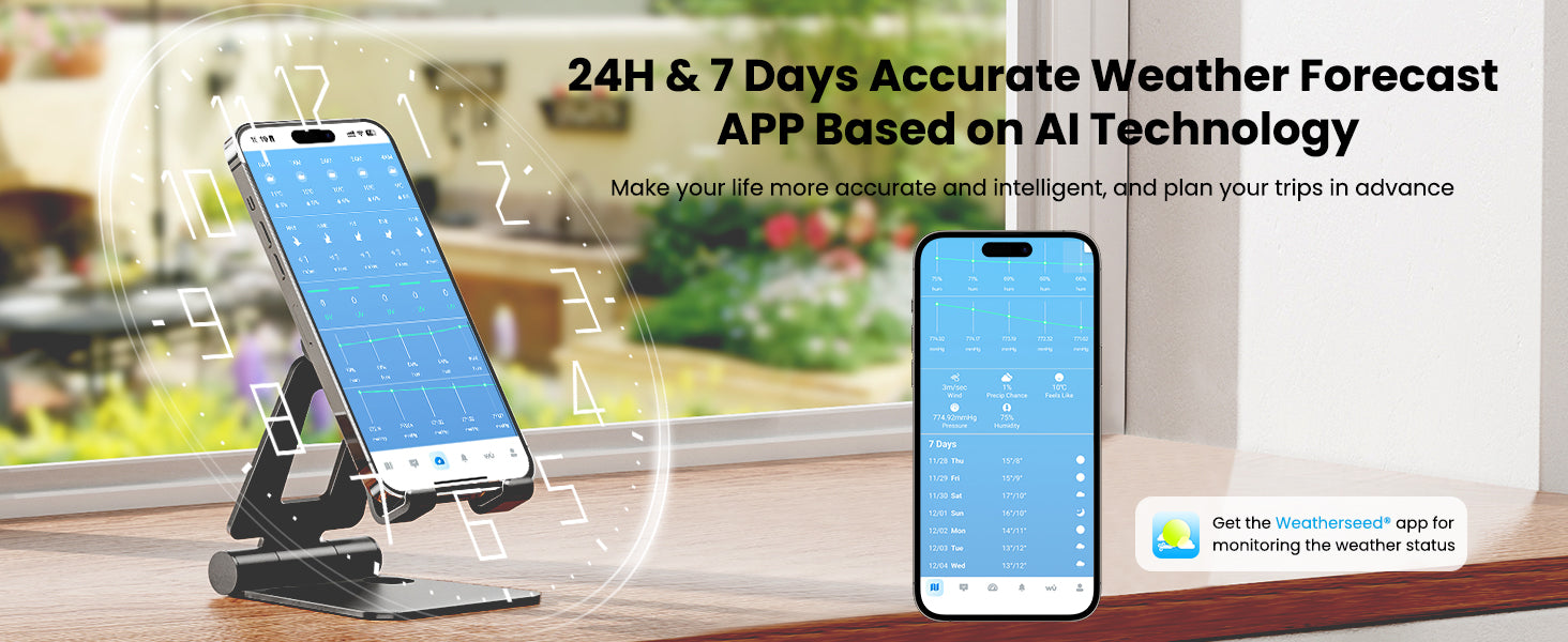 - Accurate 24-Hour & 7-Day AI Weather Forecast: The world's most advanced AI-driven weather forecasts for the next 24 hours and 7 days. Get detailed insights on temperature, humidity, air pressure, wind speed, rainfall, UV index, feels-like temperature, and moon phases. Perfect for planning outdoor activities or daily routines, this comprehensive weather data ensures you're always prepared for changing conditions.
