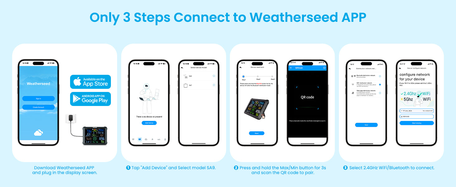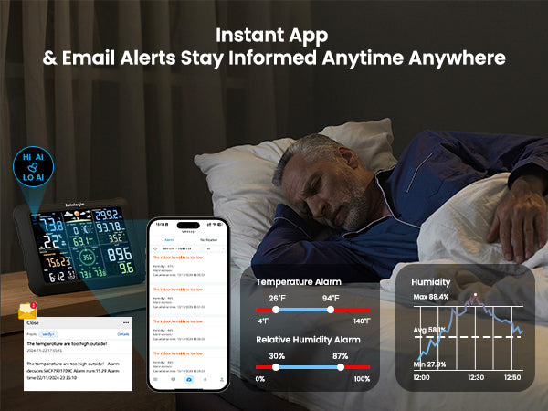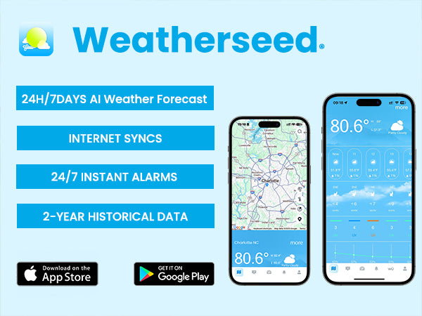 • WiFi + 24H/7 Days Al Weather Forecast + Instant Alerts