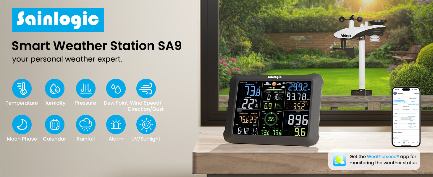 - Local Detailed Data Monitor & 2-Year Data Export: The Sainlogic smart weather station updates data every 5 minutes. View up to 2 years of historical data through charts and graphs, and easily download the data (Excel format) via the Weatherseed App for detailed analysis.