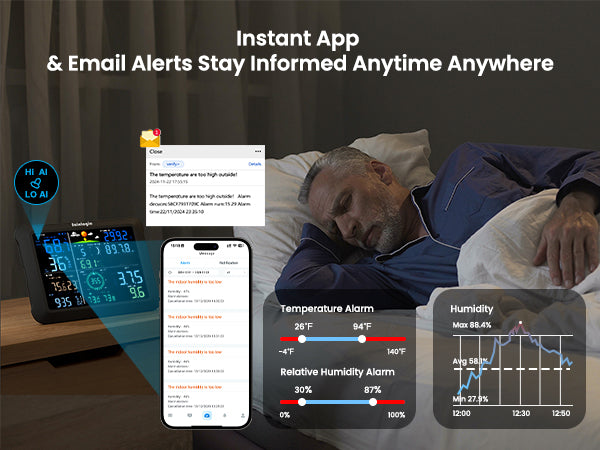 • WiFi + 24H/7 Days Al Weather Forecast + Instant Alerts