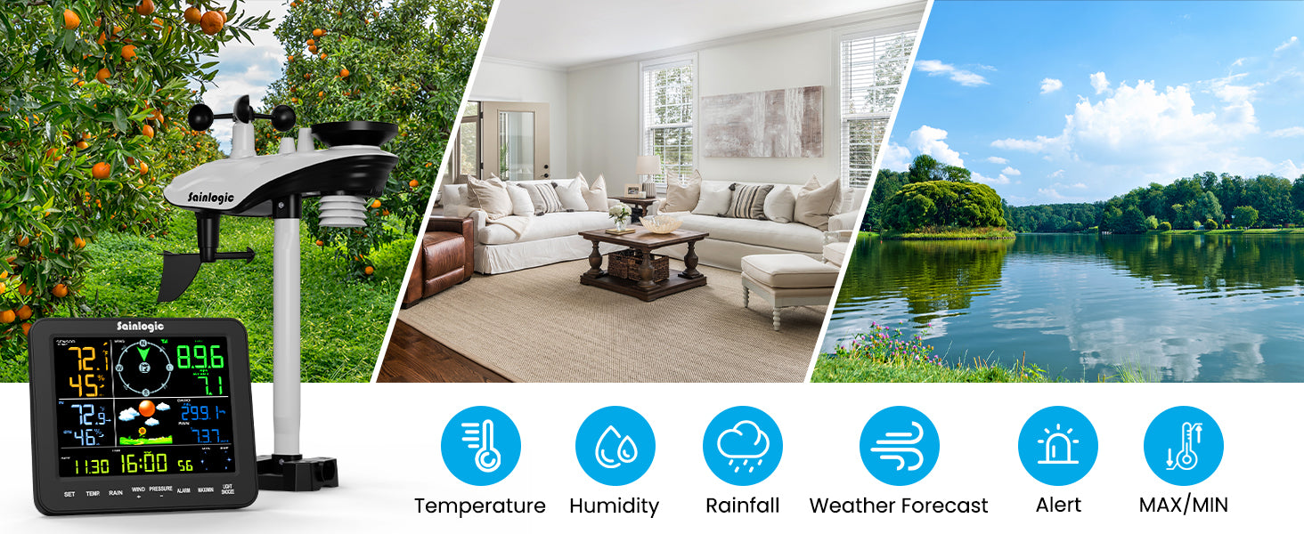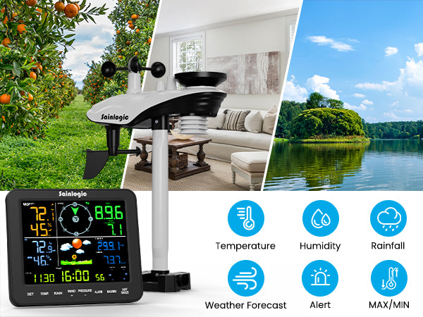 - 330ft Wireless Transmission: The 330ft long-range transmission maintains strong connectivity across expansive areas—from orchards and pastures to rooftops, piers, and RVs—penetrating obstacles like trees or walls without signal drops. This ensures the uninterrupted transmission of data for homeowners, farmers, gardeners, and coastal residents, providing reliable weather data.