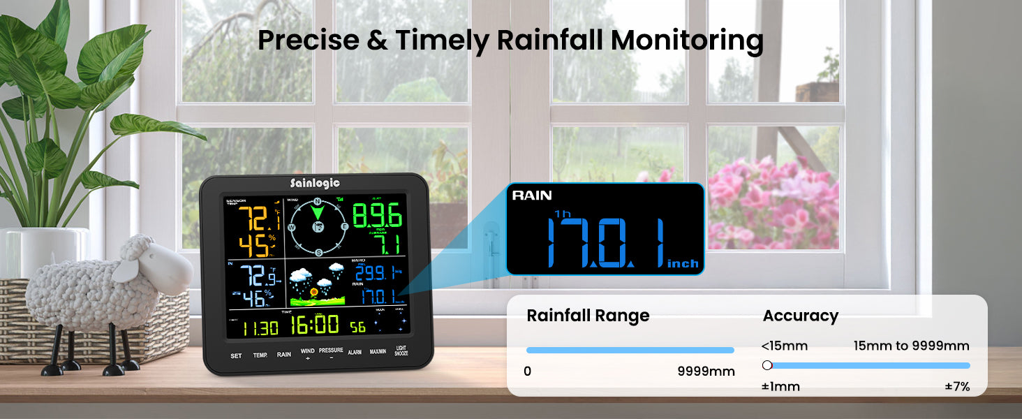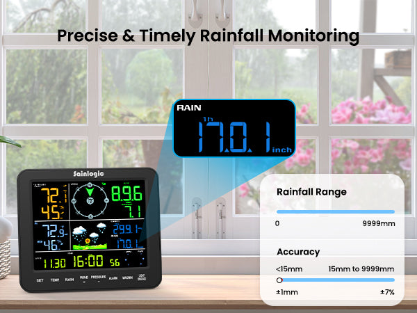 - Precision Rain Gauge: The rain gauge of this weather station has a high level of accuracy, achieving ±1mm precision for rainfall under 15mm and ±7% accuracy across its full 15-9999mm measurement range. The Weatherseed app automatically logs hourly, daily, weekly, monthly, and cumulative rainfall data – providing reliable hydrometeorological intelligence essential for mission-critical applications including technical analysis, engineering projects, flight operations, weather monitoring, and environmental research.